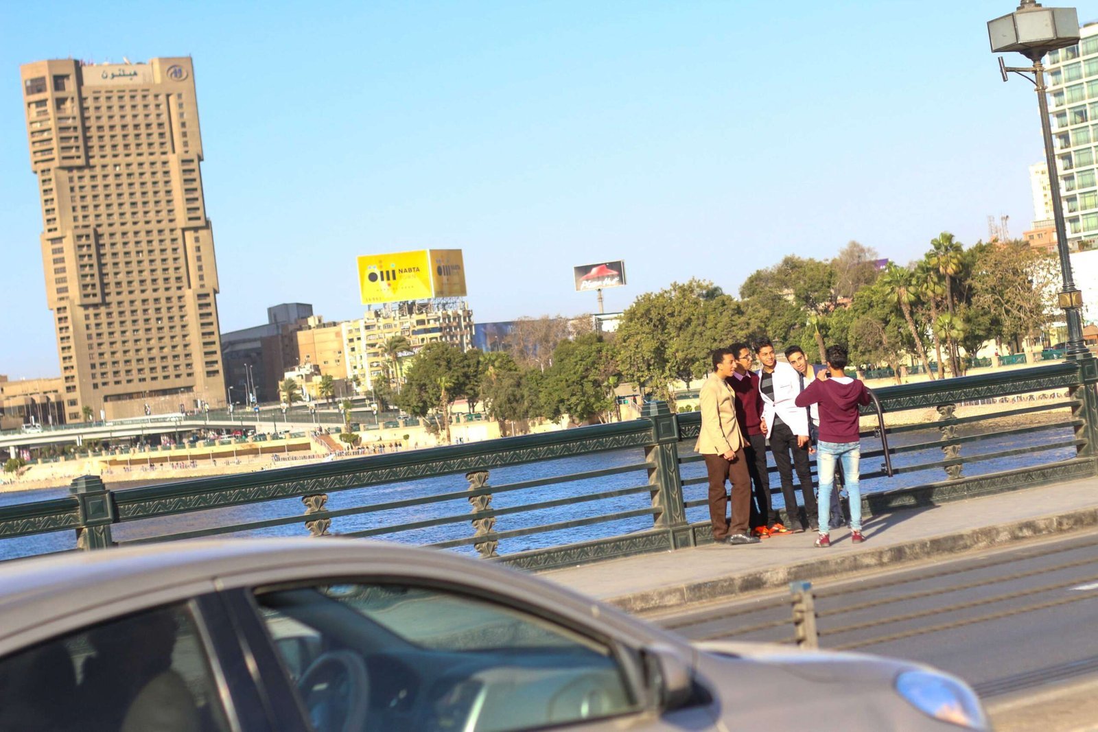 A street-level view showing pedestrians walking across Kasr el Nil Bridge during winter. The image reflects everyday movement, routine, and the bridge as a shared urban space.